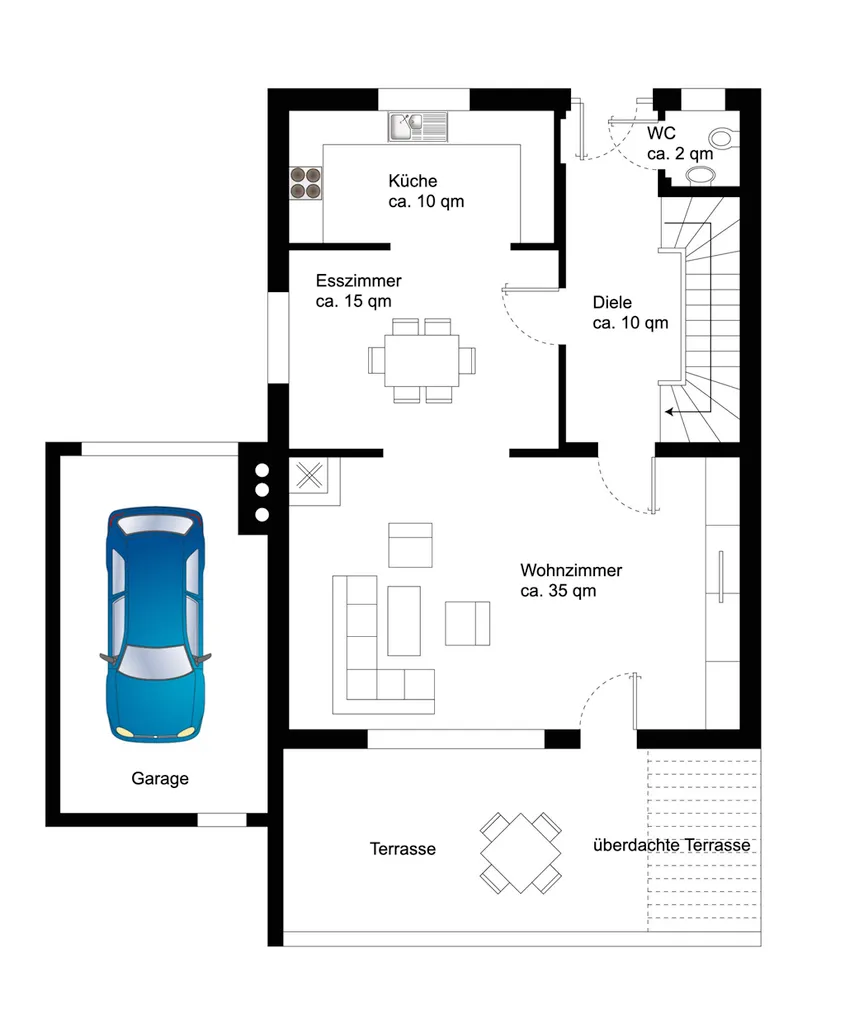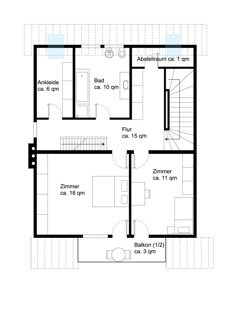 • ausgebautes Dachgeschoss mit separatem WC und Waschbecken